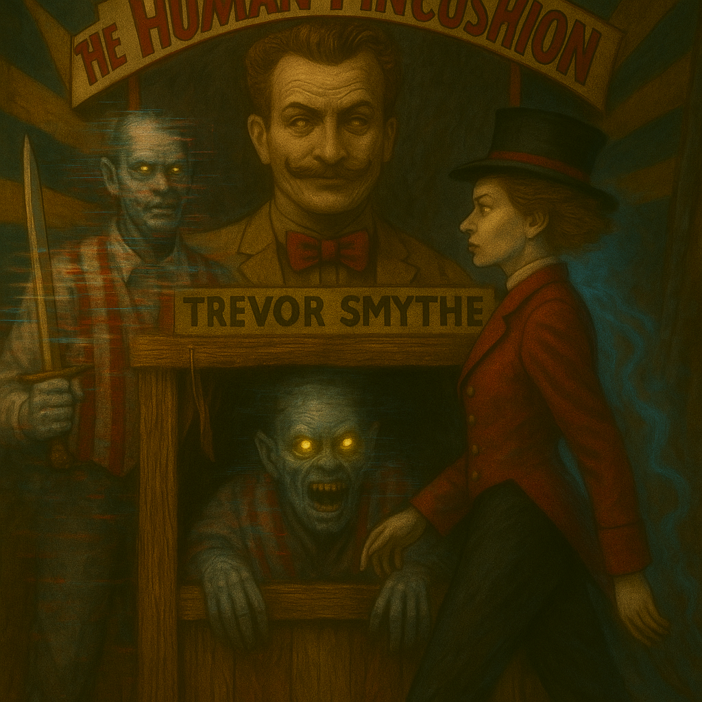 From the edge of the midway, the doll begins to move. Evelyn Rose’s porcelain vessel trembles in its place. Her top-hatted head turns, her cracked lips part. The words come at first as a whisper, then louder, cutting through the freakshow cacophony: “Ladies… and gentlemen… the show is mine.”